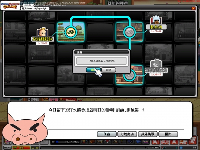試玩會中,也曝光將於上市開放的「英雄挑戰副本」,這次巴哈姆特 GNN 使用摔角少女妮妮來挑戰。首先前去尋找不理不理左衛門英雄教官,就可以接受英雄挑戰,而這次挑戰的是高衩泳裝軍團魔王森林關卡,要消耗英雄挑戰入場券一張才能進入。