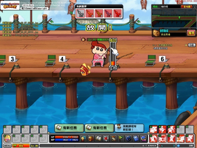 遊戲同時還有釣魚的小遊戲,玩家只要購買釣竿與魚餌裝備後就可以前往海釣場釣魚。在釣魚時,只要按照畫面指示操控滑鼠或是左右搖晃,就可順利釣起魚或蝦等,隨著釣竿與魚餌的不同,所釣的魚也會有所不同。而釣魚的成果將可讓玩家去換取 Buff 道具,以便未來在關卡中使用。