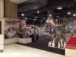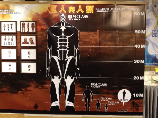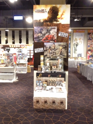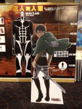 「進擊的巨人 動畫製作設定稿件特展」現場展出包括「動畫設定稿件」、「巨人與人類比例尺示意」、人氣角色「艾連、里維等身立牌」、「主要人物背景介紹」、「作品介紹」、「故事背景」等。