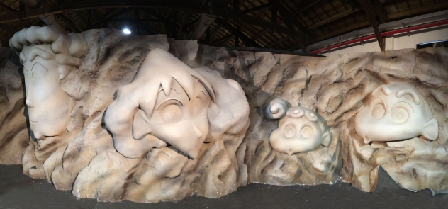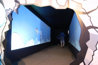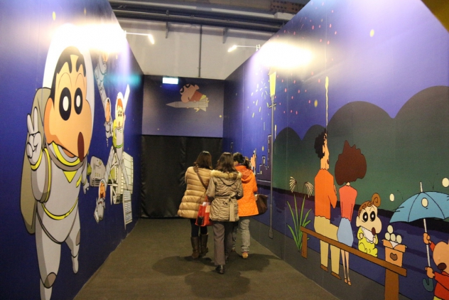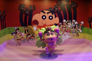 這次的展覽,以小新一家人居住的城市,也是作者臼井儀人老師實際成長的故鄉「春日部」為主題,藉由春日部的各個場景,帶領大家深入蠟筆小新的世界中冒險。在入口進門處就有一尊 150 公分高的動感超人造型小新公仔在迎接來賓,穿過「春日部奇幻隧道」抵達「春日部廣場」,則有一整面高 3.5 公尺、寬 10 公尺的小新家族雕像山搭配精采的動畫短片邀請大家進入冒險世界。